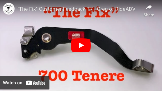 Ride ADV.com.au is a tour company in Australia. They have a fleet of Yamaha T7's with hundreds of thousands of cumulative kilometers on them. We sent them one of our "The Fix" brake pedals. They've been testing it since. The video is from Greg Yager (the company's owner).